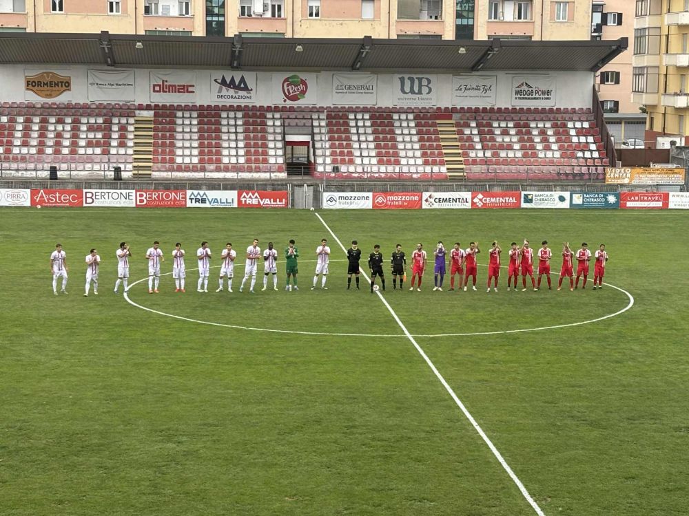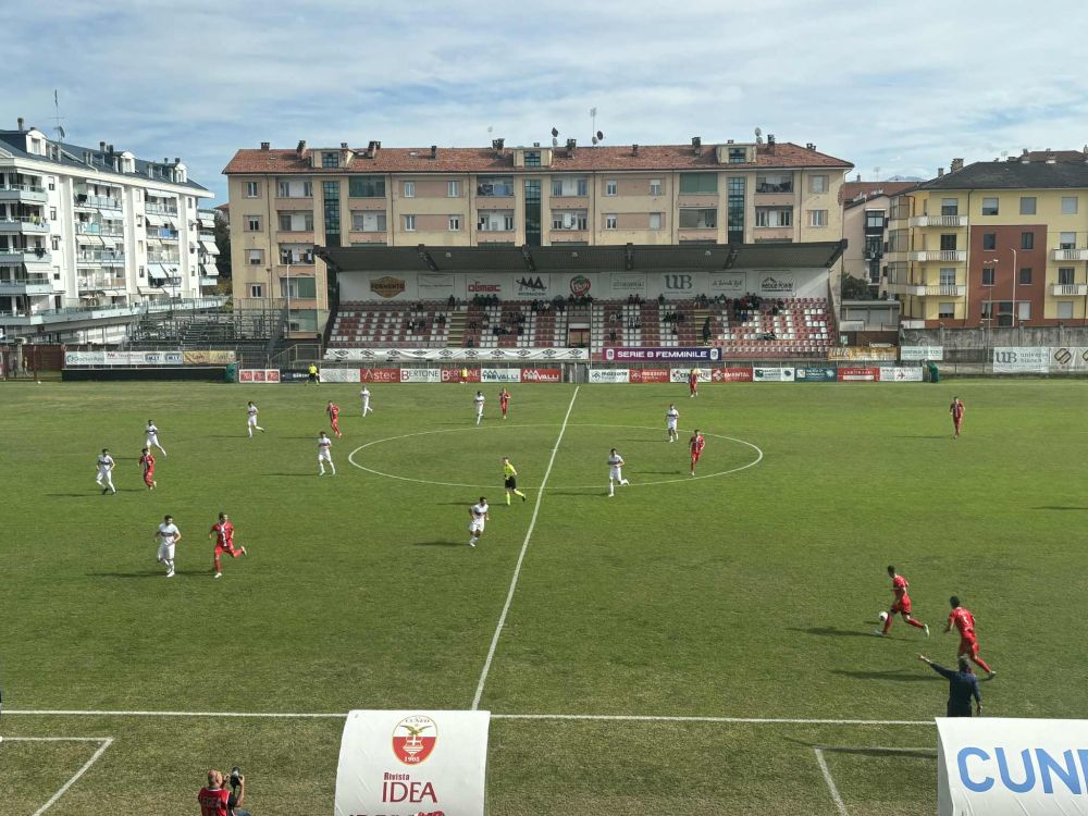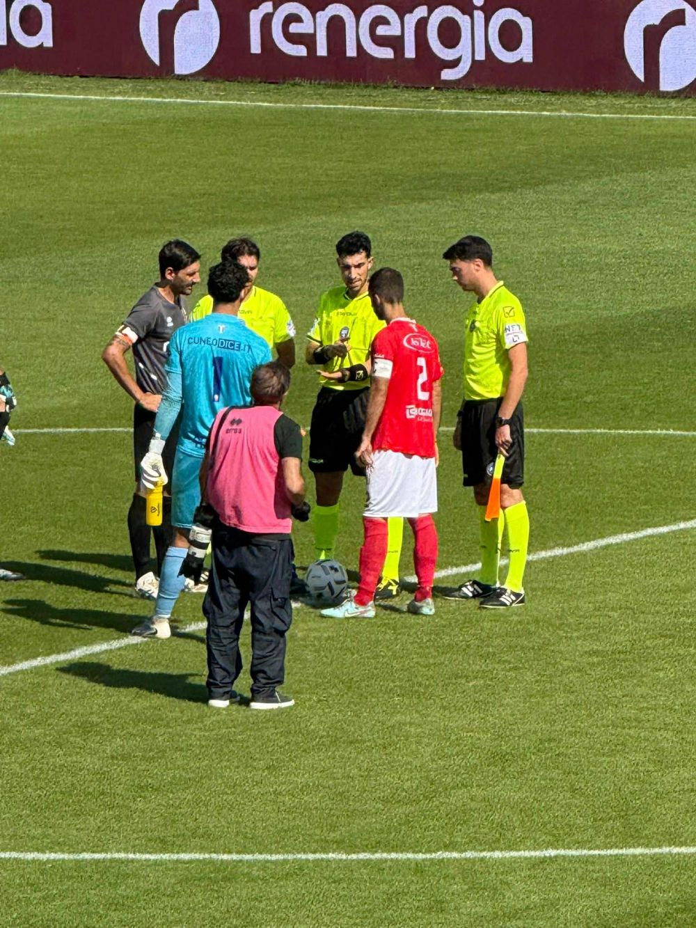 Non porta punti la trasferta al Moccagatta per i biancorossi, subito di fronte a una delle corazzate del campionato. La sconfitta è figlia della rete subita in avvio quando da un'azione sulla destra imbastita da Pellegrini e Morganti la palla arriva sui piedi di Ventre per l'1-0. Il Cuneo reagisce con Gyimah, ma Colla è attento, poi è Caristo ad avvicinare il pareggio su azione d'angolo: Pellegrini salva nei pressi della linea di porta, che il pallone a detta del direttore di gara non aveva varcato completamente. Un tocco di mano invece rende vana la segnatura di Orlando. Nella ripresa, con...